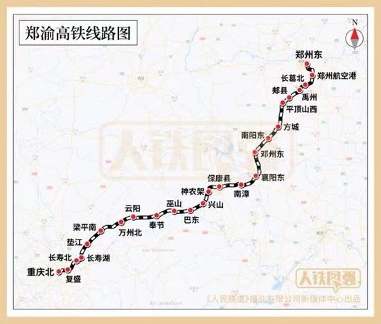 鄭渝高鐵北起河南省鄭州市,南至重慶市,途經(jīng)河南、湖北、重慶三省市,全長1068公里,其中,重慶北至萬州北段、鄭州東至襄陽東段已于2016年和2019年開通。鄭渝高鐵全線開通運(yùn)營后,重慶至鄭州最快4小時可達(dá),同時大大縮短了重慶到達(dá)北京、武漢等城市的時長,有效提升重慶鐵路通道北上、東出能力,有助于發(fā)揮重慶作為一帶一路”和長江經(jīng)濟(jì)帶聯(lián)結(jié)點(diǎn)的戰(zhàn)略定位。