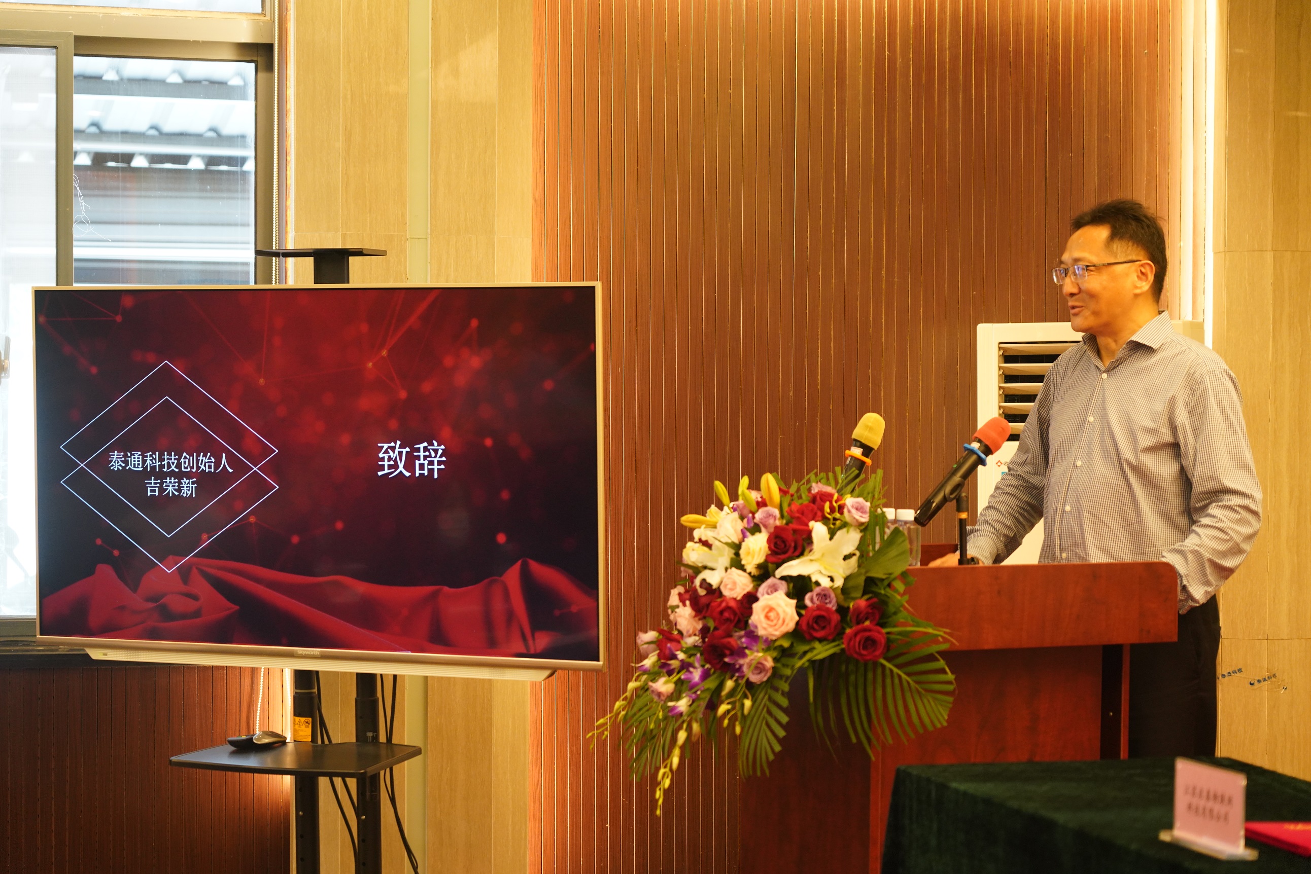 下午兩點三十分許,創(chuàng)始人吉榮新、泰通科技董事長陳建平等公司領導陪同與會嘉賓共同步入會場,在泰通科技副董事長吉鵬程的宣布下揭牌儀式正式開始。