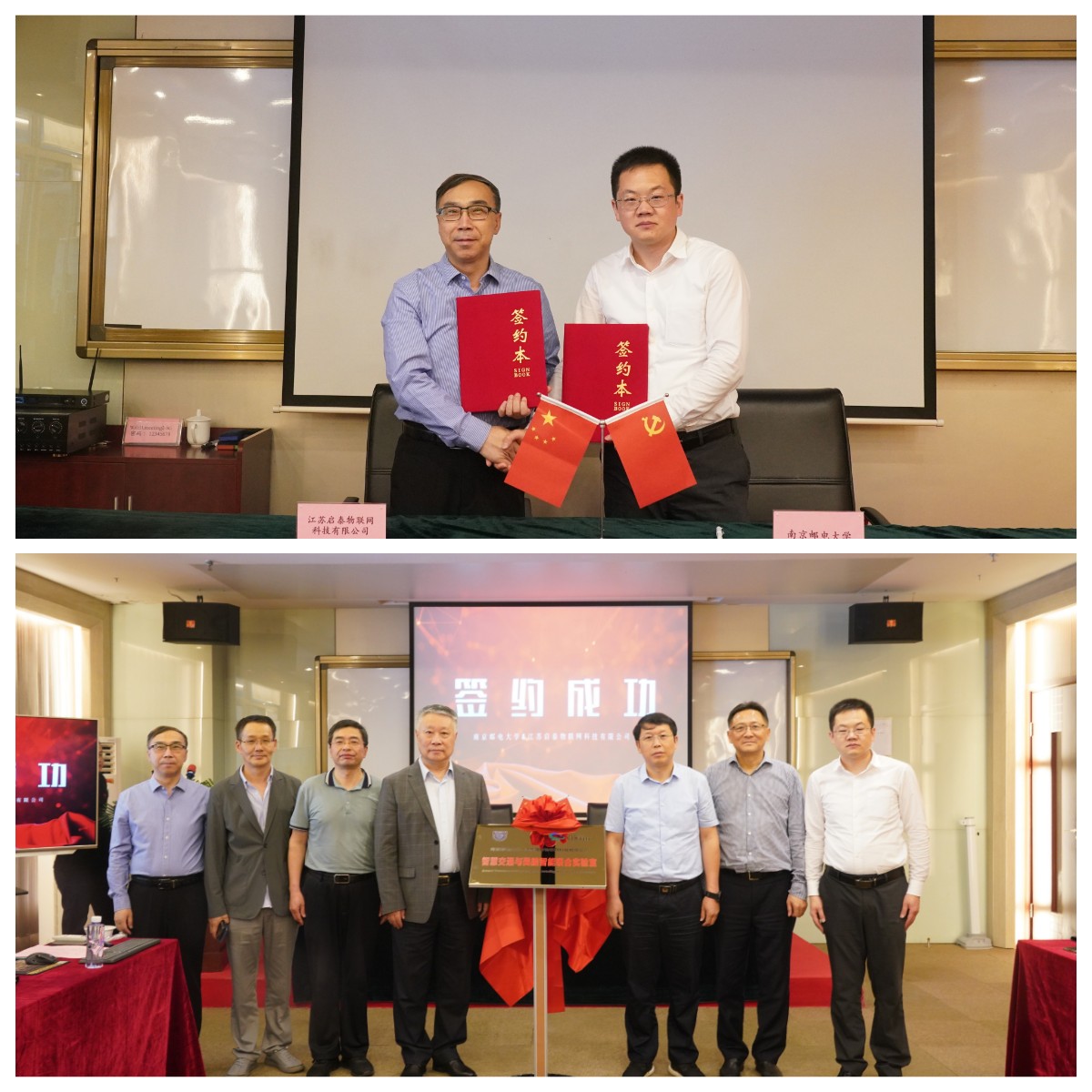15時許,揭牌儀式正式開始,泰通科技董事長陳建平與南京郵電大學通信與信息學院副院長趙海濤分別代表泰通科技和南京郵電大學進行簽約、揭牌,隨后雙方與會人員合影留念。