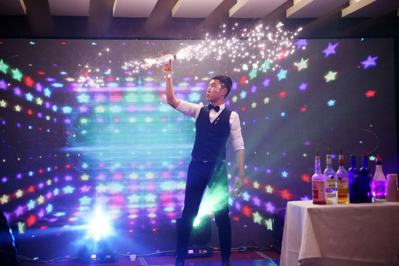 整場晚會由節(jié)目表演和歡樂抽獎交替進(jìn)行。節(jié)目表演部分形式多樣、精彩紛呈,不僅有專業(yè)的高水平表演團(tuán)隊加盟,更有員工及家屬傾情演繹:開場節(jié)目《4D激光舞》剛勁有力、時尚魅影、潮流炫動,在黑暗中跳出激情;人體懸浮魔術(shù)精彩刺激、扣人心弦;舞蹈“水墨江南”唯美大氣,引人入勝;花式調(diào)酒火光十色熱情奔放;銷售公司李雄演唱的《夢中的綠洲》高亢嘹亮,猶如天籟;銷售公司執(zhí)行總監(jiān)張玲的女兒劉玥含小朋友帶來的“寶貝模特秀”,古靈精怪,靈氣逼人;廣州代表處袁鵬宇演繹的街舞青春洋溢、動感十足,歌聲、掌聲、歡呼聲持續(xù)在會場蕩漾。