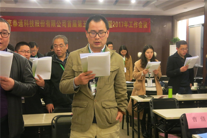 大會伊始,公司董事長吉榮新作了題為《新規(guī)則、新思想、新起點(diǎn)、新泰通》的2017年工作報(bào)告,提出了“一個(gè)總體思路、五項(xiàng)主要目標(biāo)、十大重點(diǎn)工作”。報(bào)告從經(jīng)營拓展、研發(fā)創(chuàng)新、管理提升、泰通家園等四個(gè)方面總結(jié)回顧了公司2016年取得的主要工作成績,從經(jīng)營目標(biāo)、服務(wù)目標(biāo)、研發(fā)目標(biāo)、建設(shè)目標(biāo)、管理目標(biāo)等5個(gè)維度指明了2017年的工作方向,從體系建設(shè)、戰(zhàn)略規(guī)劃、預(yù)算管理等10余方面周密部署了2017年度重點(diǎn)工作,為實(shí)際工作的開展提供了有力的抓手,報(bào)告內(nèi)容全面、數(shù)據(jù)詳實(shí)、催人奮進(jìn),參會的全體代表倍感鼓舞!