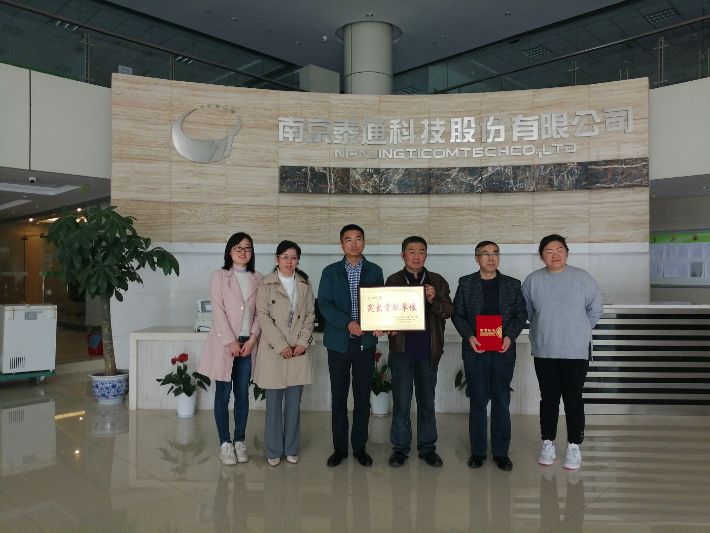 近日,泰通科技被中共南京市雨花臺(tái)區(qū)委開發(fā)區(qū)工委、雨花經(jīng)濟(jì)開發(fā)區(qū)管理委員會(huì)授予“2019年度突出貢獻(xiàn)獎(jiǎng)”稱號(hào)。這一榮譽(yù),既是對(duì)泰通公司良好經(jīng)營業(yè)績的表彰,也是對(duì)泰通公司為當(dāng)?shù)亟?jīng)濟(jì)發(fā)展貢獻(xiàn)的肯定。